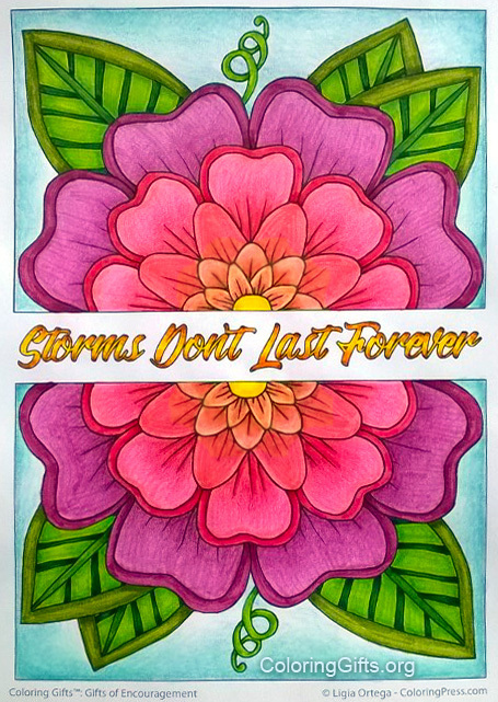This book provides hours of relaxing coloring to help focus on strength and resilience and to help you cope with the stresses and cares of the world. Colorists have written to share that they have used this book to help them with recovery from substance abuse, to help encourage them with weight loss, to help them cope with major illness, divorce, cancer, the loss of loved ones, and more.
