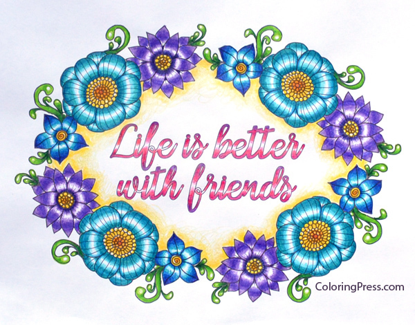 Illustrations have a variety of designs, formal and informal, and intricate and less intricate pages to color.  Book includes instructions to help you add special touches to pages, cards, and bookmarks to be given as gifts, and also has information to help use the pages as an aid to prayer or meditation to reap the full health benefits of friendship.